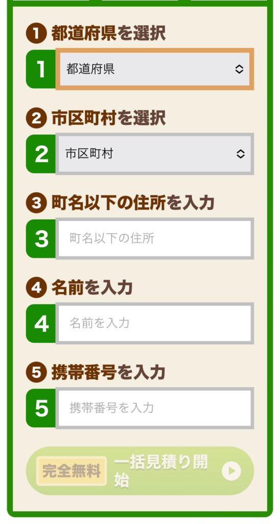 最短1分で簡単に見積もり依頼が完了します。見積もりまでのステップは以下の通りです。